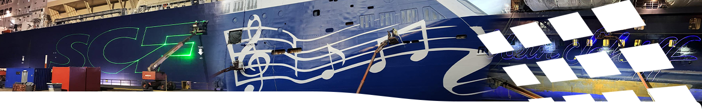 Für Reedereien ist das besonders attraktiv, weil Großflächenbeschriftungen und Logos häufig nicht einmalig passieren: Rebranding, neue Schiffe, Flottenstandardisierung oder wiederkehrende Lackierfenster führen dazu, dass eine Lösung gebraucht wird, die wiederholbar, planbar und wirtschaftlich ist. Und genau hier ersetzt Laserprojektion einen großen Teil der klassischen „Folien-Denke“: Riesige Folienbahnen werden nicht als Schablone benötigt, weil die Projektion die Geometrie direkt auf die Fläche bringt. Das Endergebnis bleibt eine dauerhafte Lackierung – die Projektion ist lediglich die präzise Vorlage.