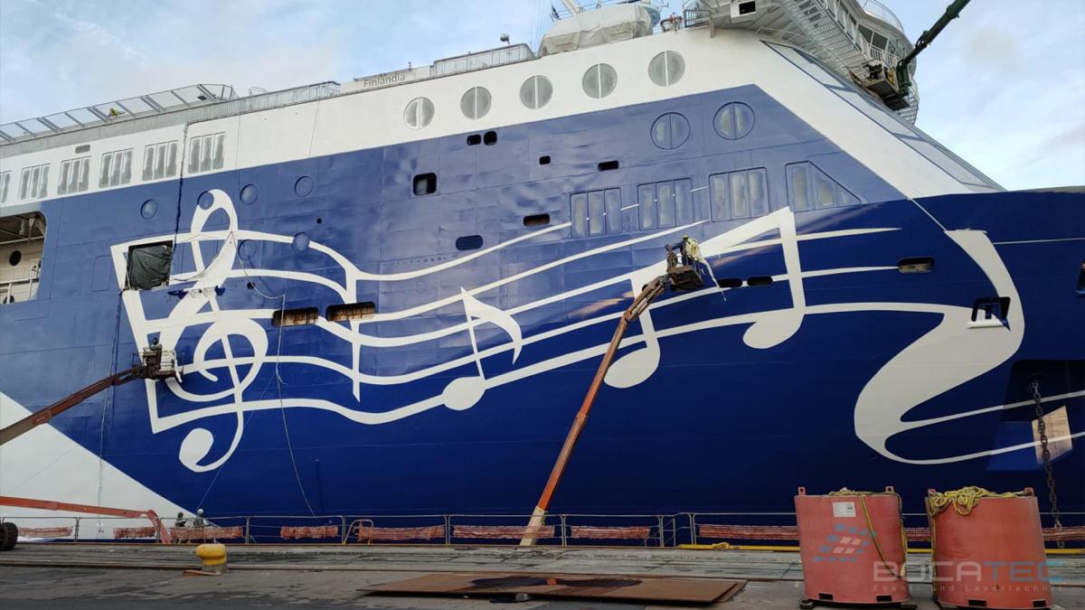 Für Reedereien ist das besonders attraktiv, weil Großflächenbeschriftungen und Logos häufig nicht einmalig passieren: Rebranding, neue Schiffe, Flottenstandardisierung oder wiederkehrende Lackierfenster führen dazu, dass eine Lösung gebraucht wird, die wiederholbar, planbar und wirtschaftlich ist. Und genau hier ersetzt Laserprojektion einen großen Teil der klassischen „Folien-Denke“: Riesige Folienbahnen werden nicht als Schablone benötigt, weil die Projektion die Geometrie direkt auf die Fläche bringt. Das Endergebnis bleibt eine dauerhafte Lackierung – die Projektion ist lediglich die präzise Vorlage.