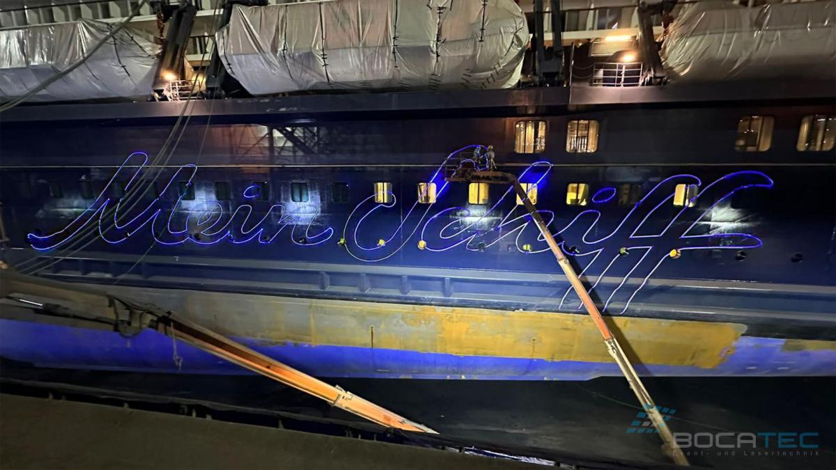 Damit eine XXL-Projektion reibungslos funktioniert, braucht es saubere Planung: Lichtverhältnisse, Aufstellpunkte, Sicherheitsbereich, Zeitfenster und die Abstimmung mit dem Lackierbetrieb. Genau hier bringen wir Erfahrung mit – wir planen den Einsatz so, dass er sich in den Werftalltag integrieren lässt. Ziel ist ein Setup, das nicht stört, sondern den Prozess beschleunigt und klare Übergaben ermöglicht.