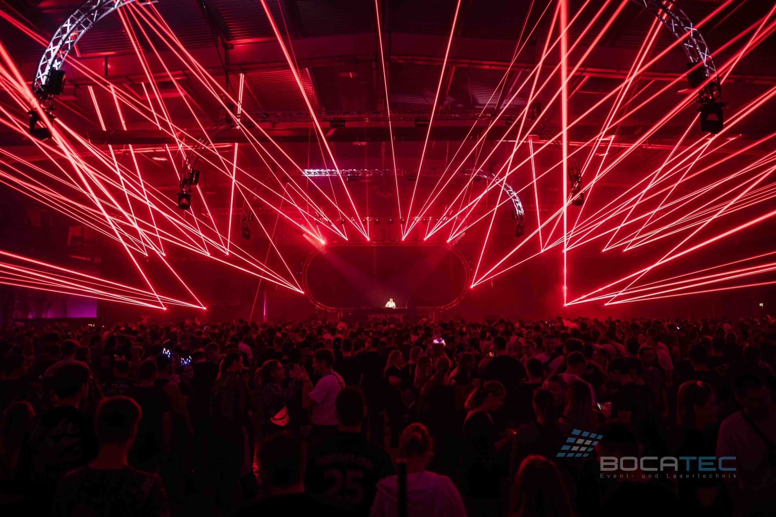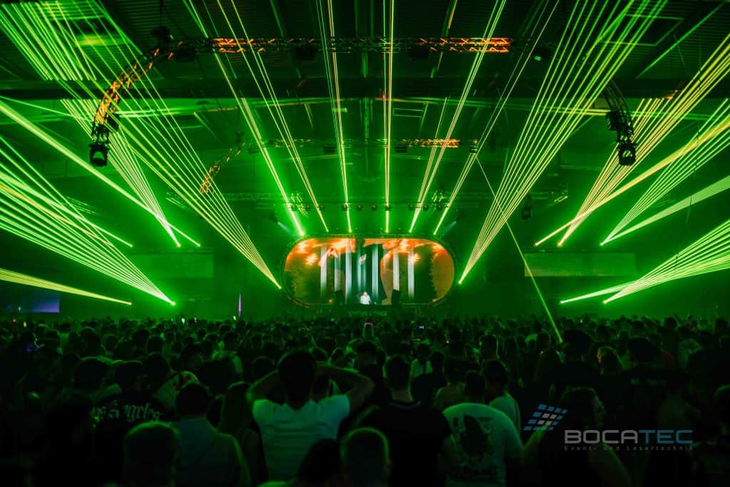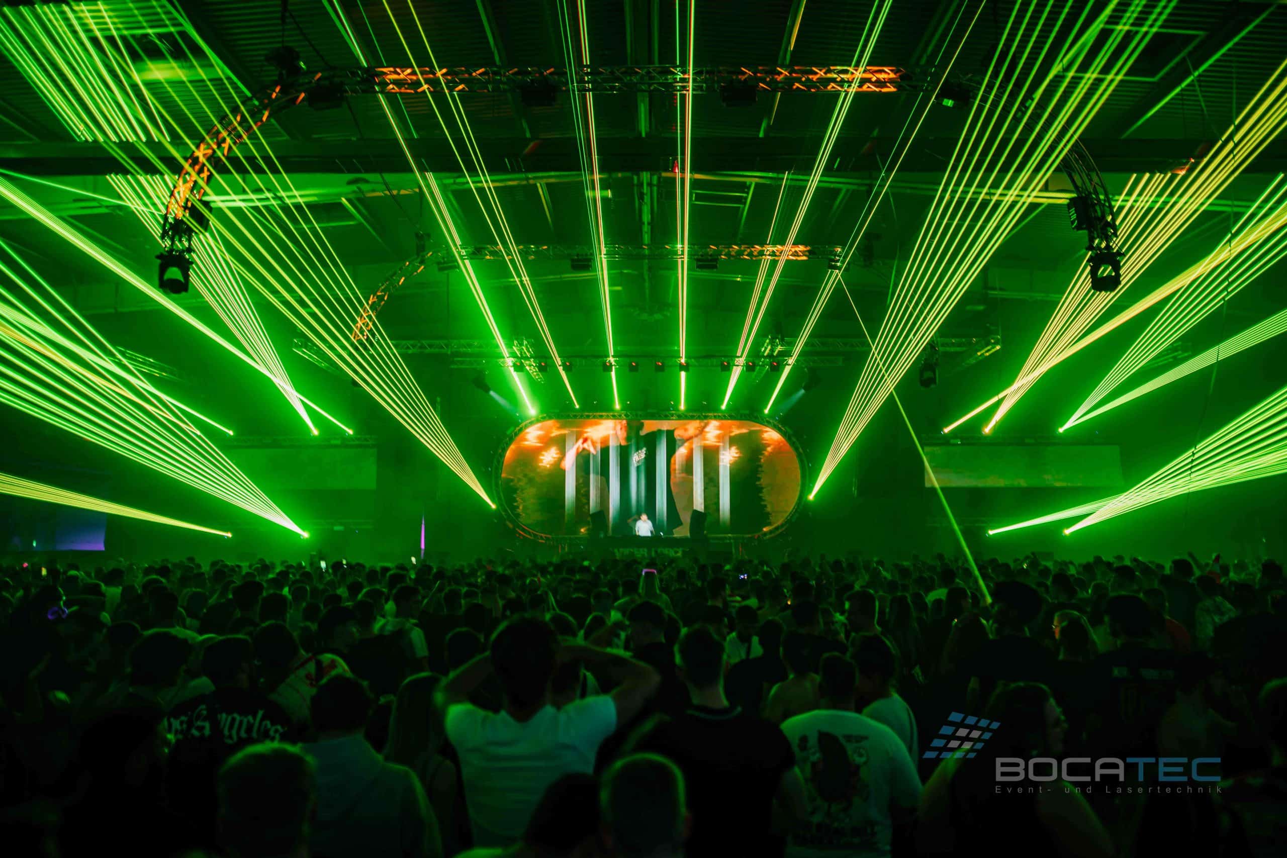 Lasertechnik auf höchstem Niveau mit RGB-Laserprojektoren bis 40 Watt, gesteuert über Pangolin Beyond Ultimate, sorgte für spektakuläre Effekte im Takt der Musik.